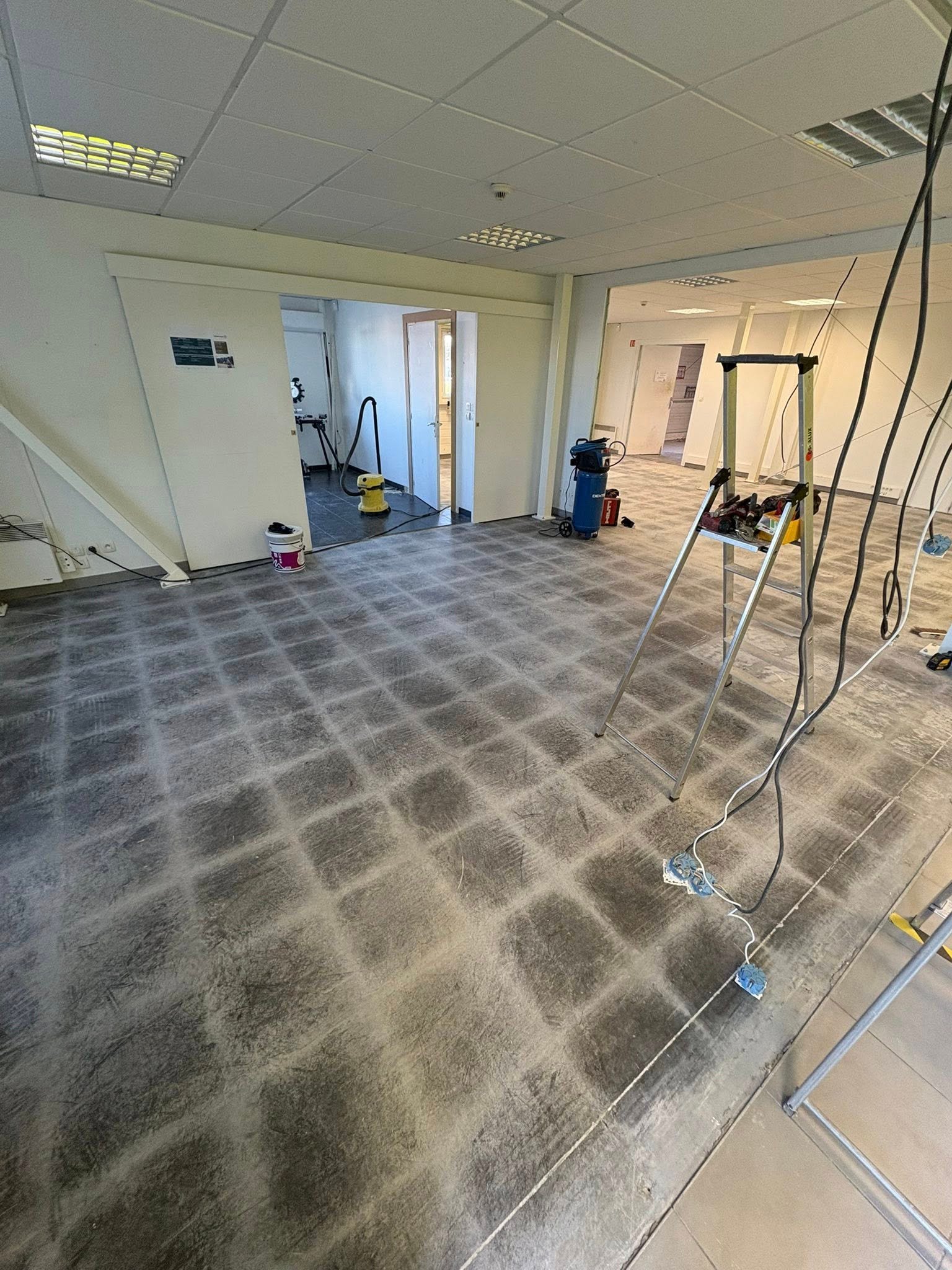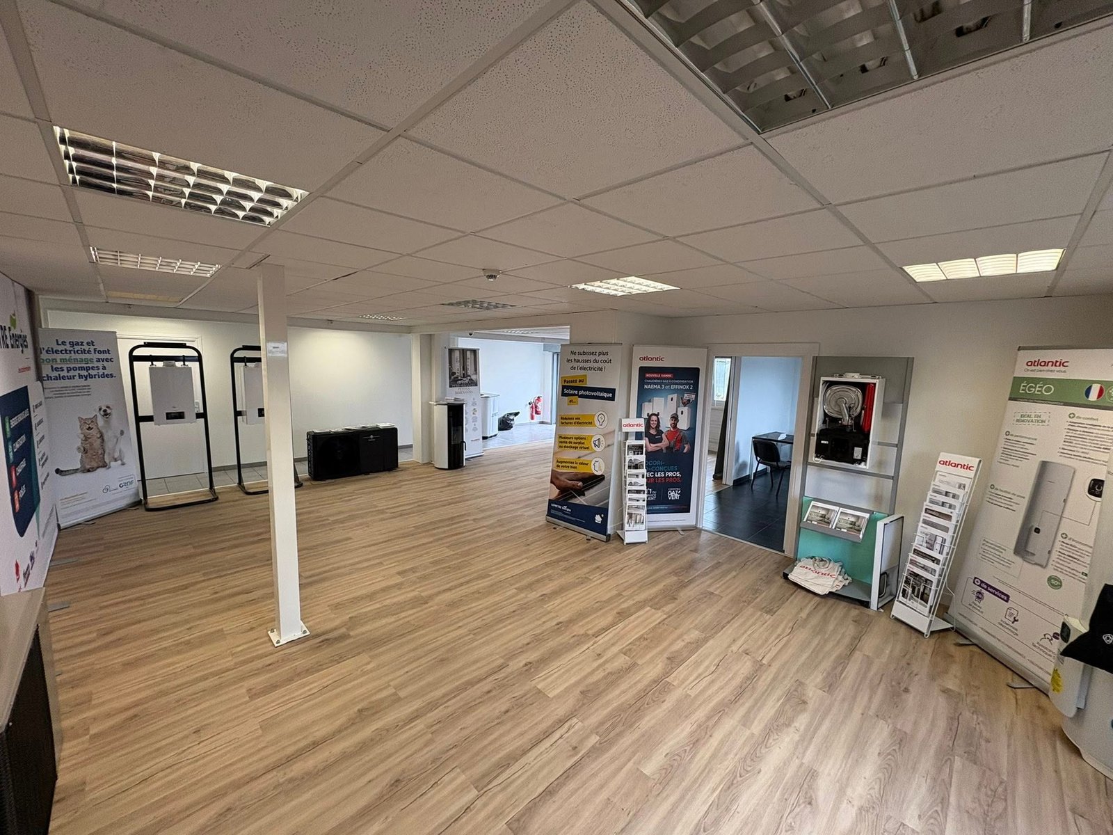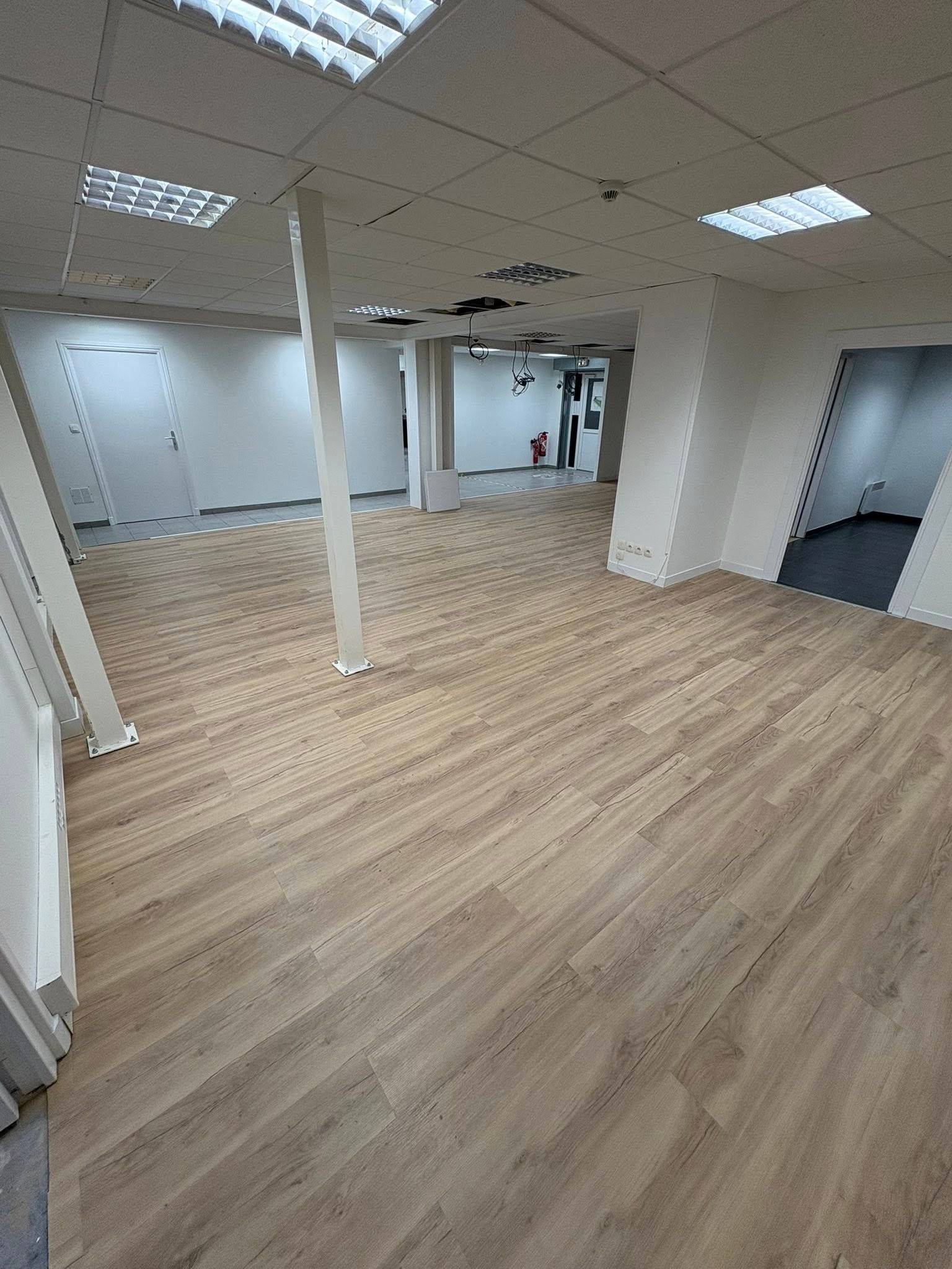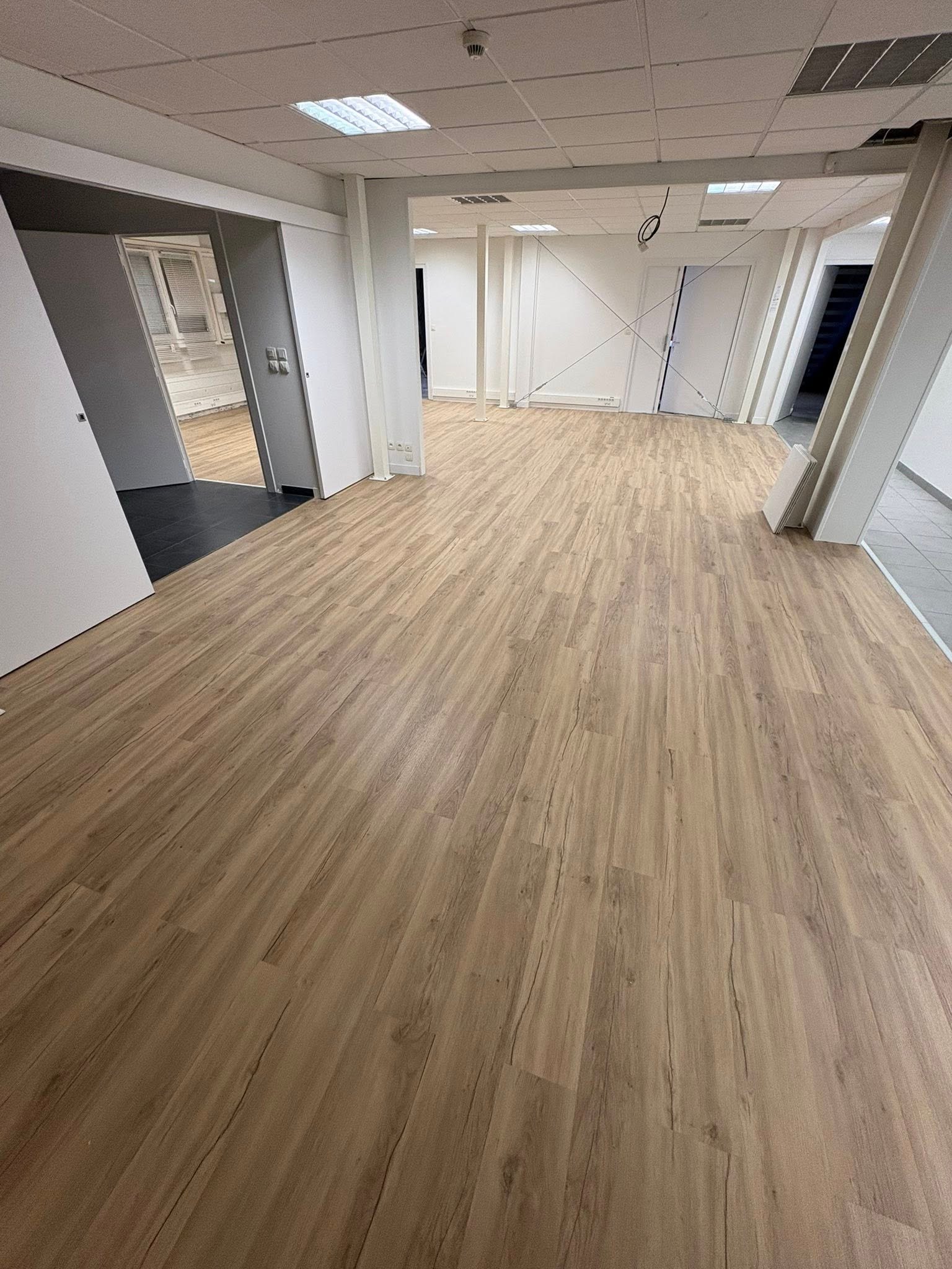 Travaux effectués : modification électrique, cloison abattue, carrelage retiré plus ponçage du sol et pose d’un sol PVC, peinture dans tout le show-room avec pose de plinthes et barres de seuil, etc. Merci pour leur confiance et Bonne portes ouvertes.