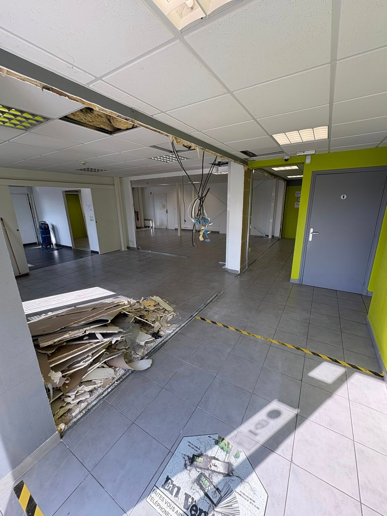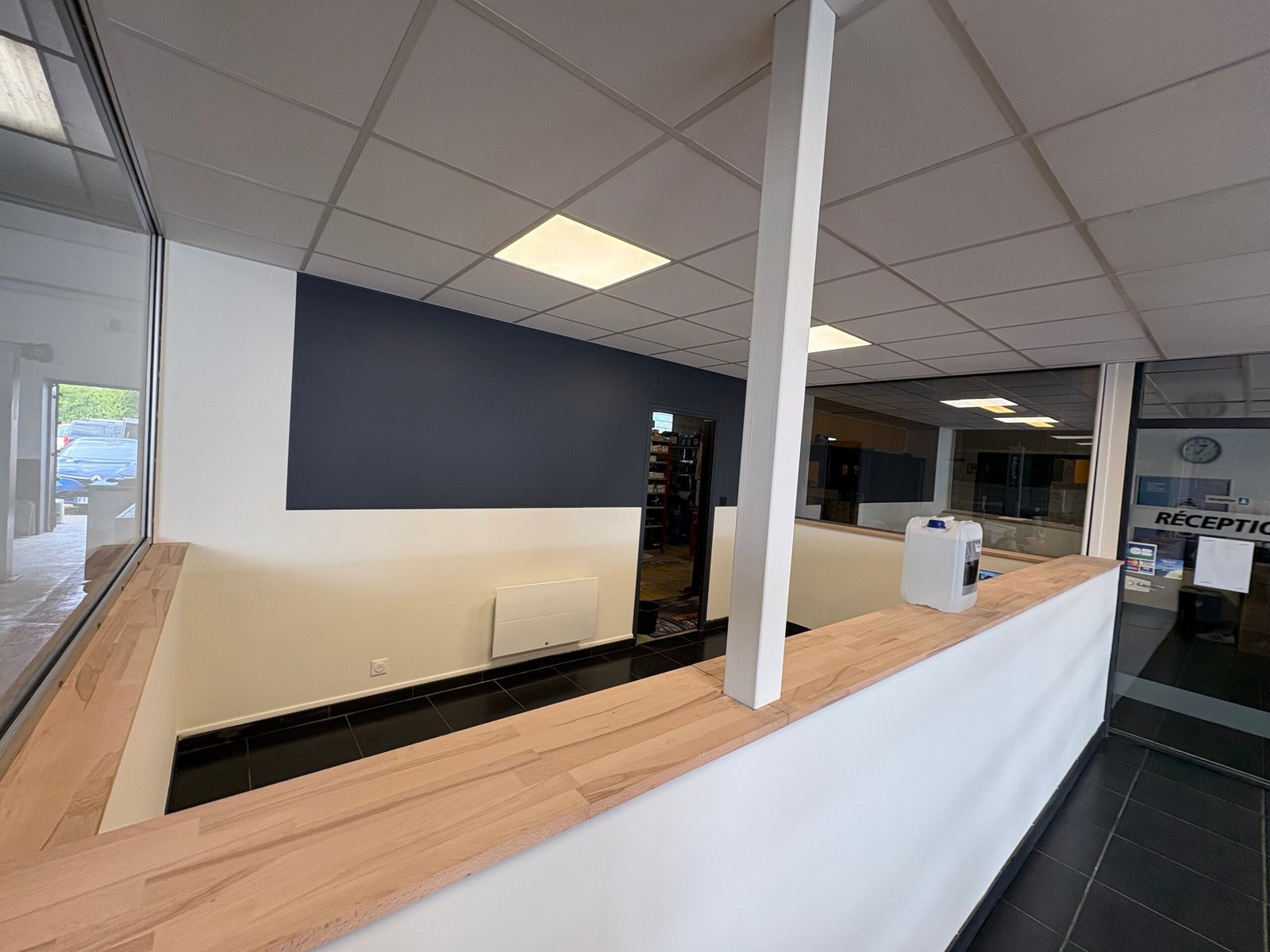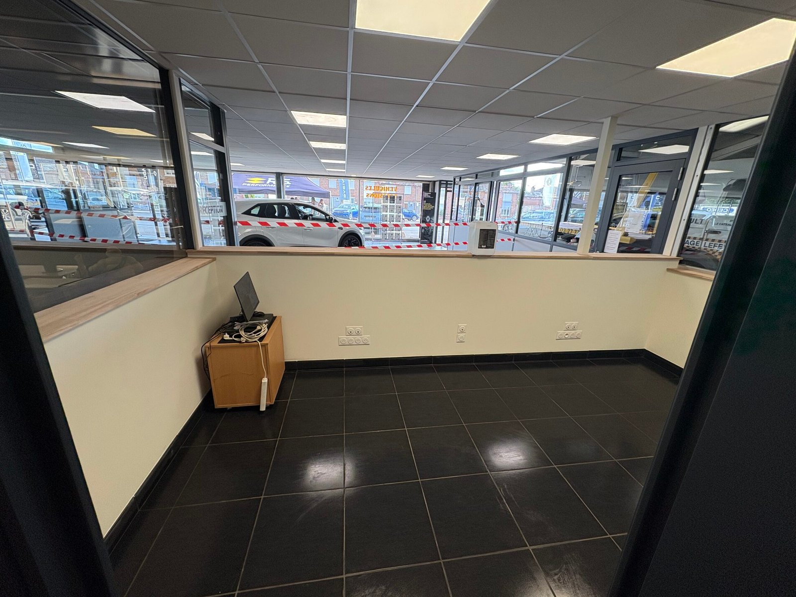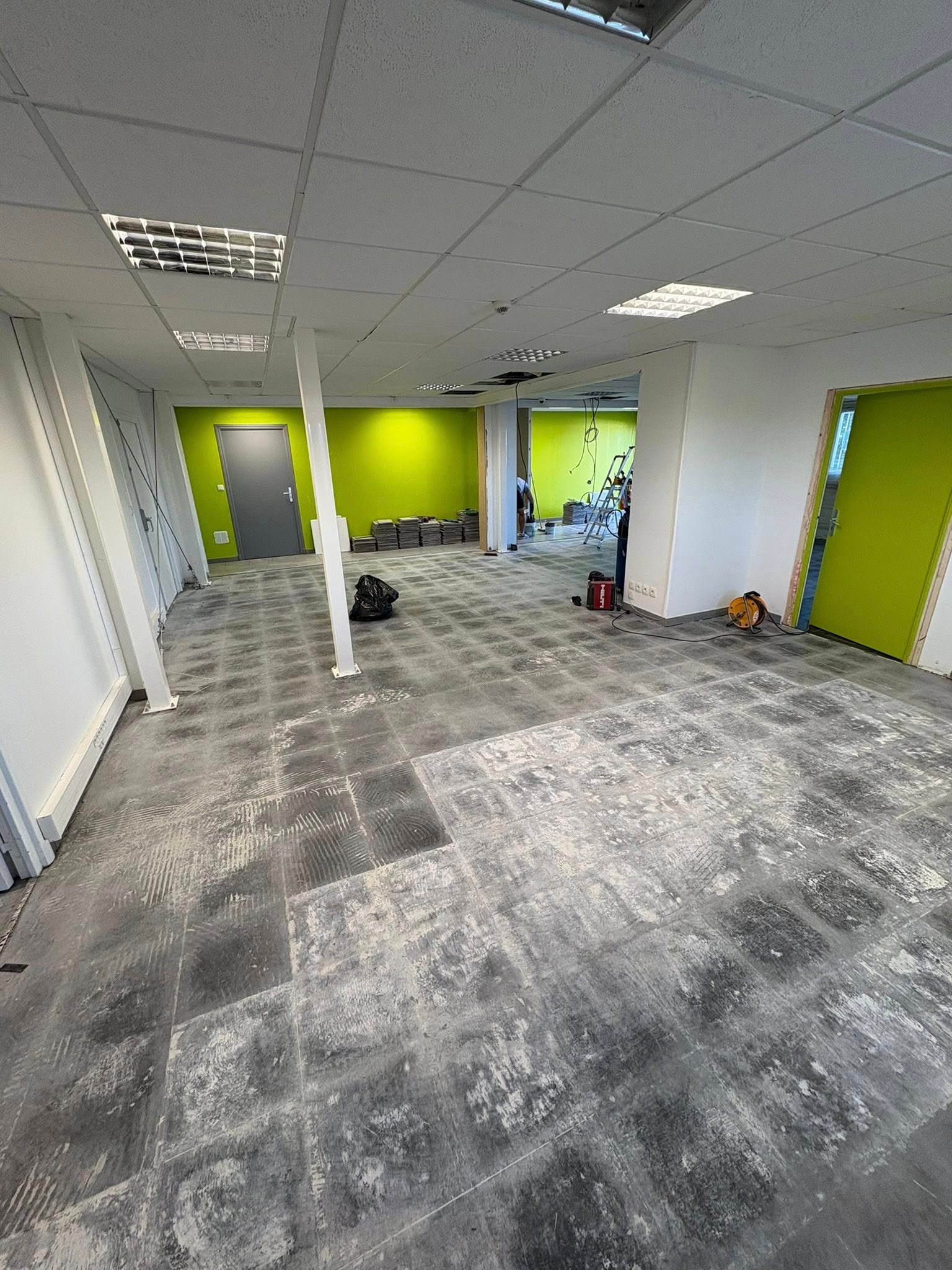 Travaux effectués : modification électrique, cloison abattue, carrelage retiré plus ponçage du sol et pose d’un sol PVC, peinture dans tout le show-room avec pose de plinthes et barres de seuil, etc. Merci pour leur confiance et Bonne portes ouvertes.