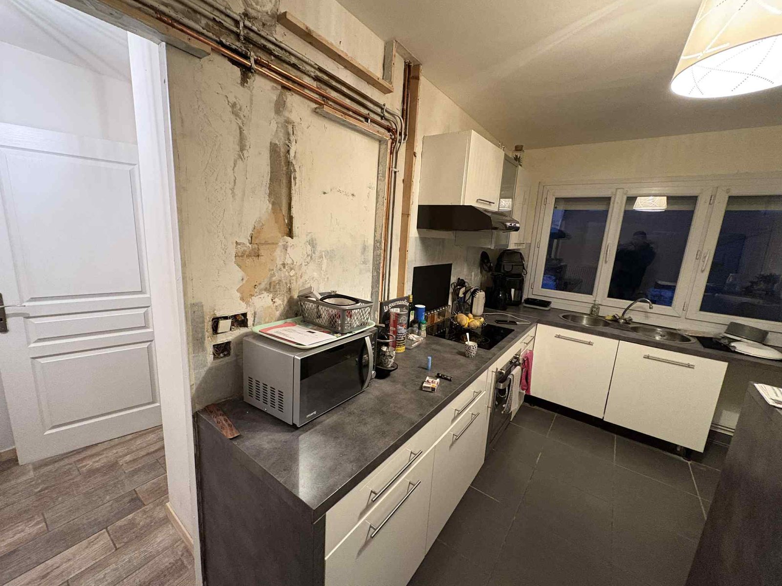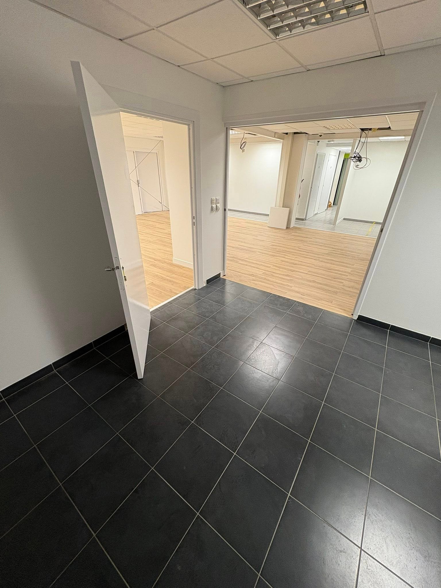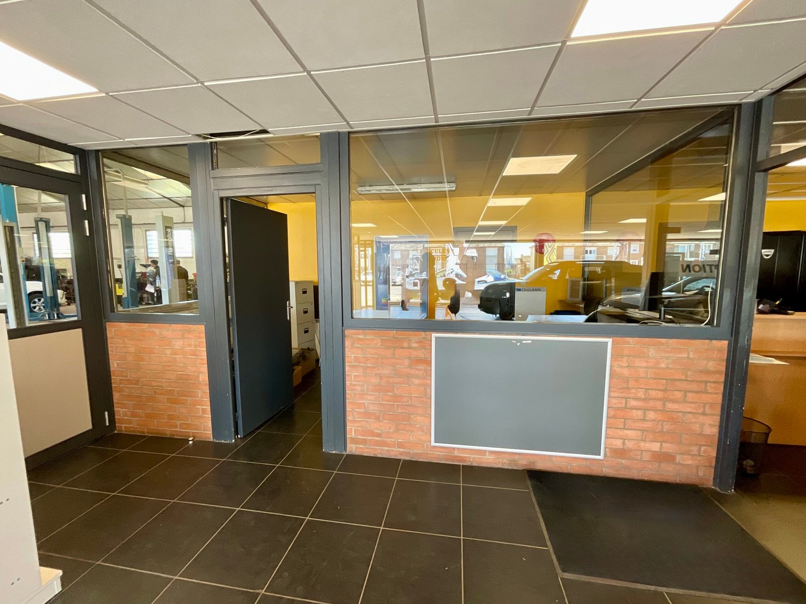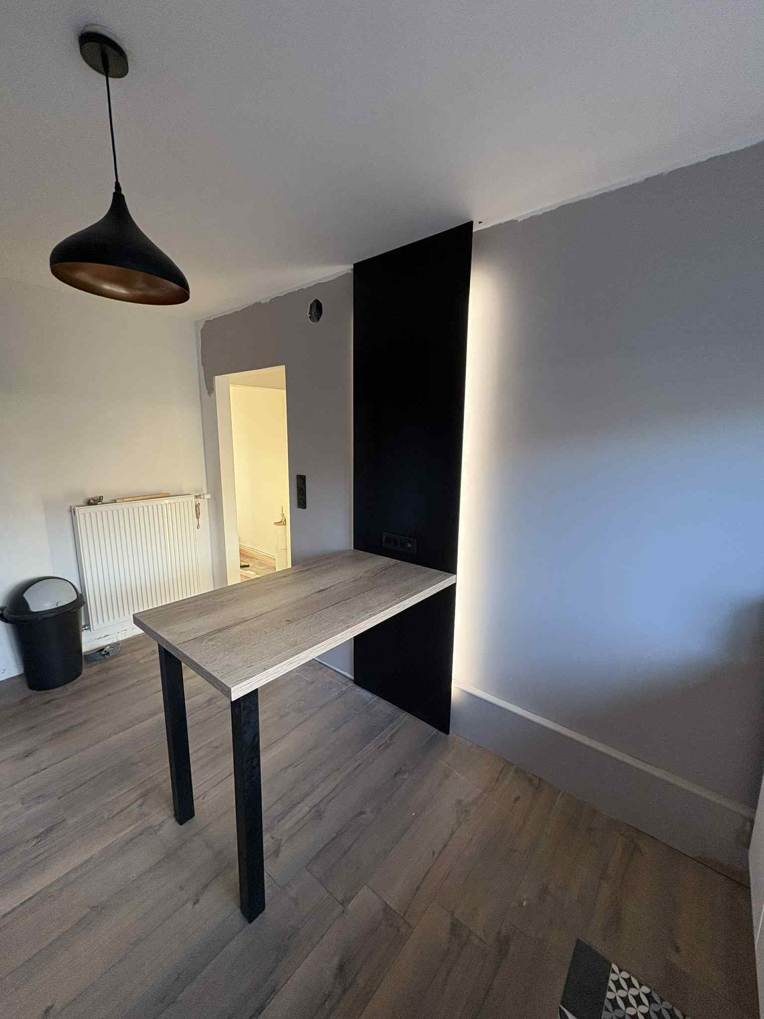 Travaux effectués : modification électrique, cloison abattue, carrelage retiré plus ponçage du sol et pose d’un sol PVC, peinture dans tout le show-room avec pose de plinthes et barres de seuil, etc. Merci pour leur confiance et Bonne portes ouvertes.